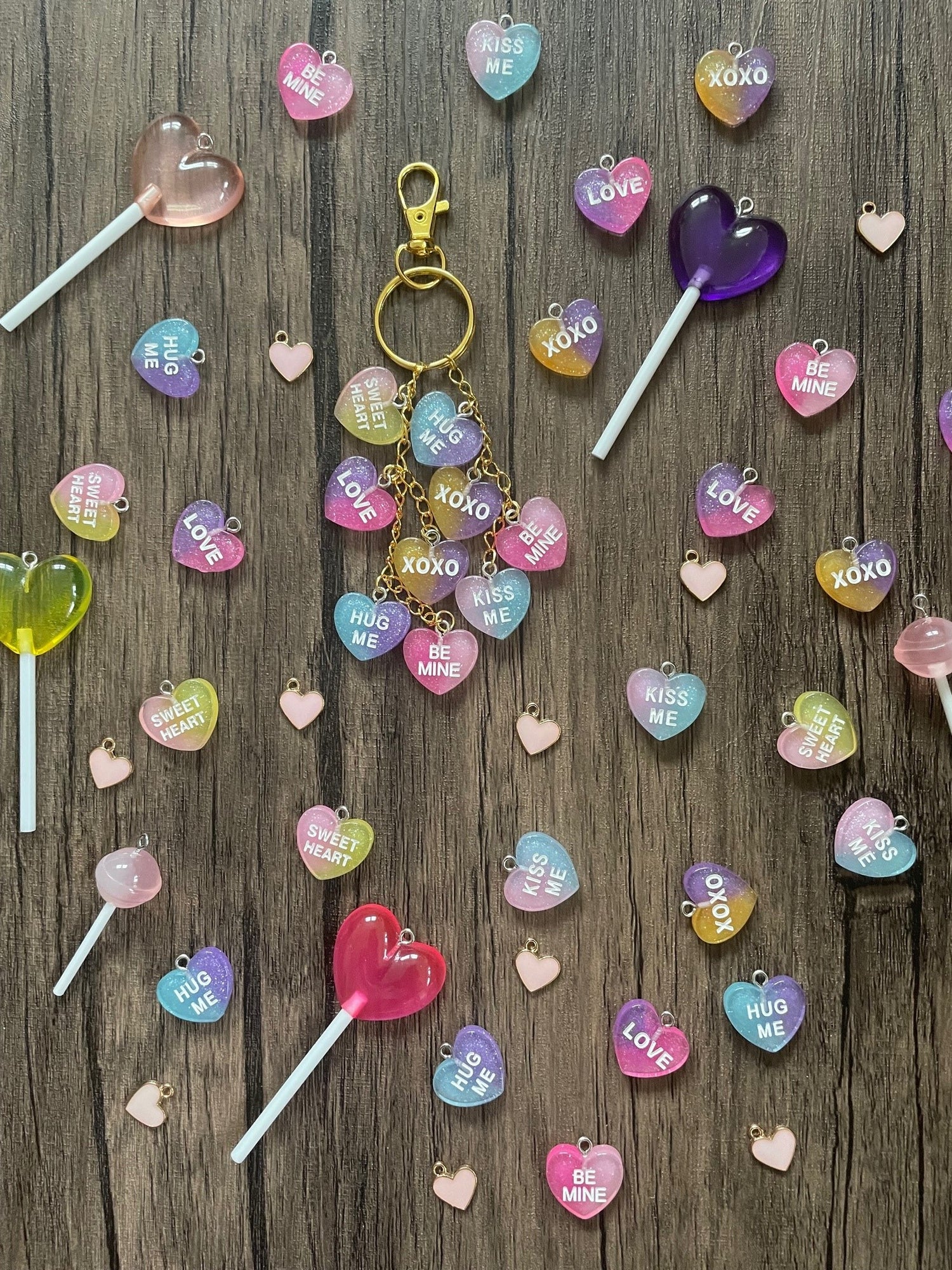 Love Candy Red and Pink Heart Lollipop Charm Necklace