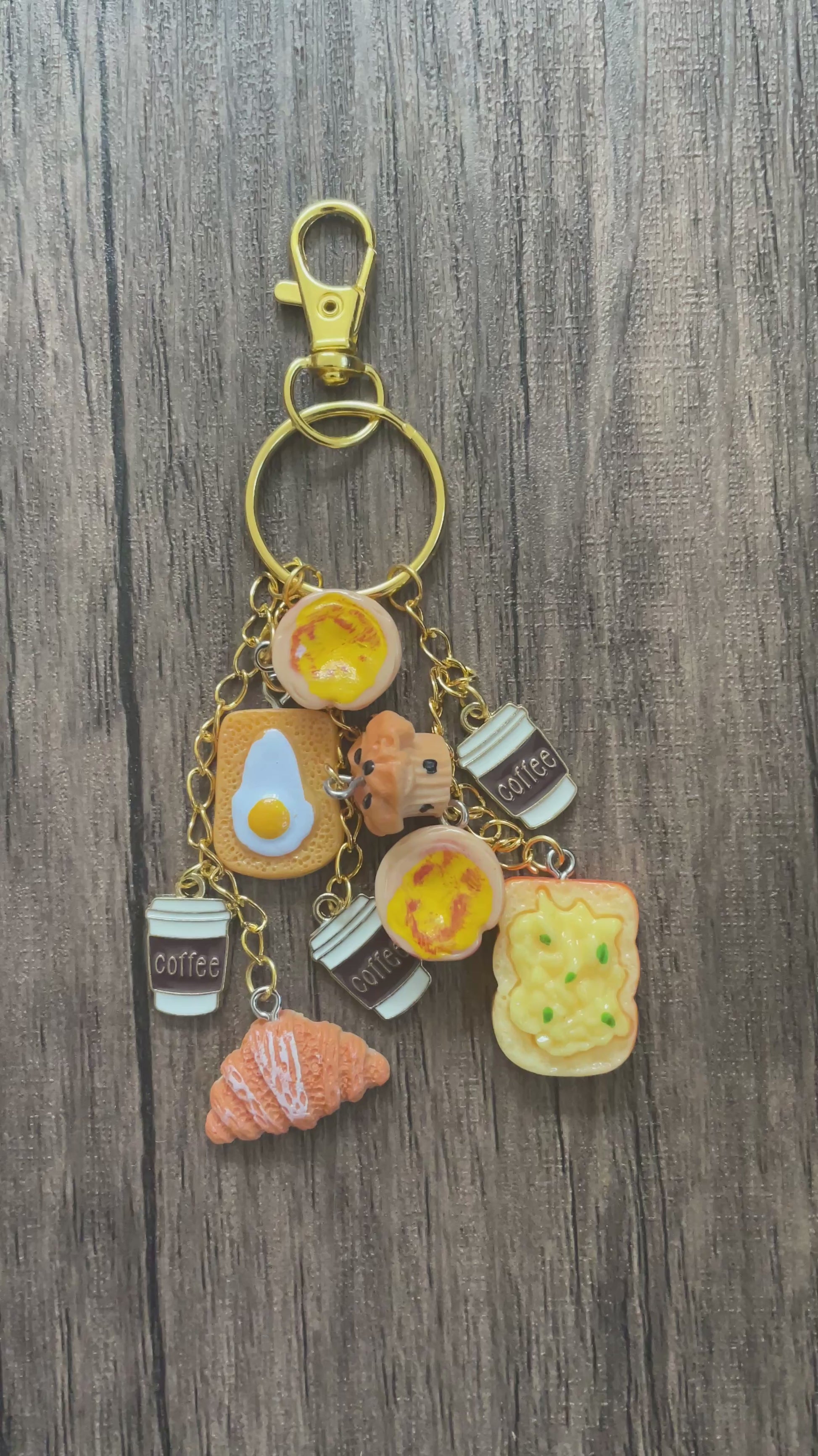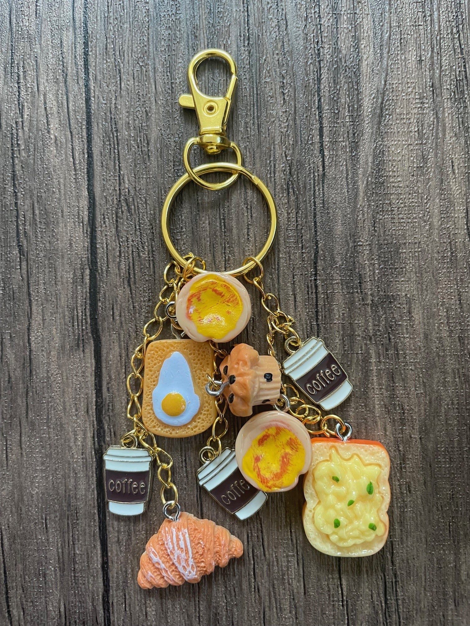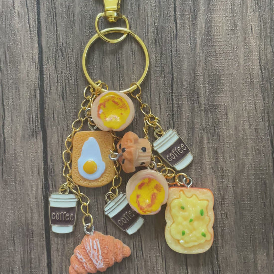 Love Breakfast Coffee Cups, Toast, and Croissant Gold Bag Charm