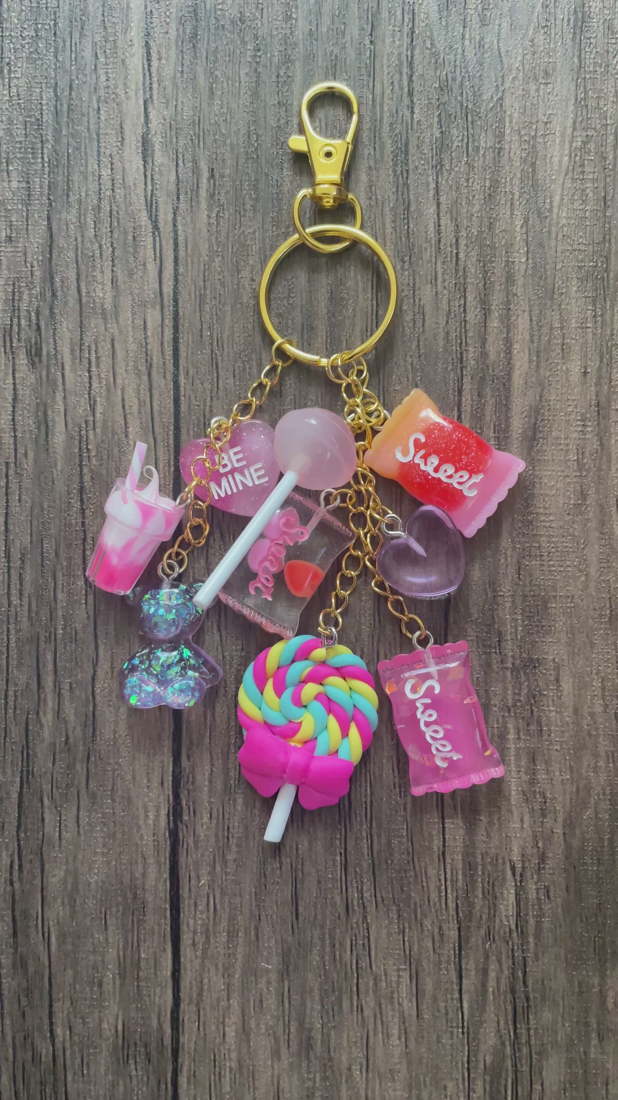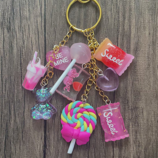 Love Candy Dark Pink Lollipop, Sweets, and Milkshake Gold Bag Charm
