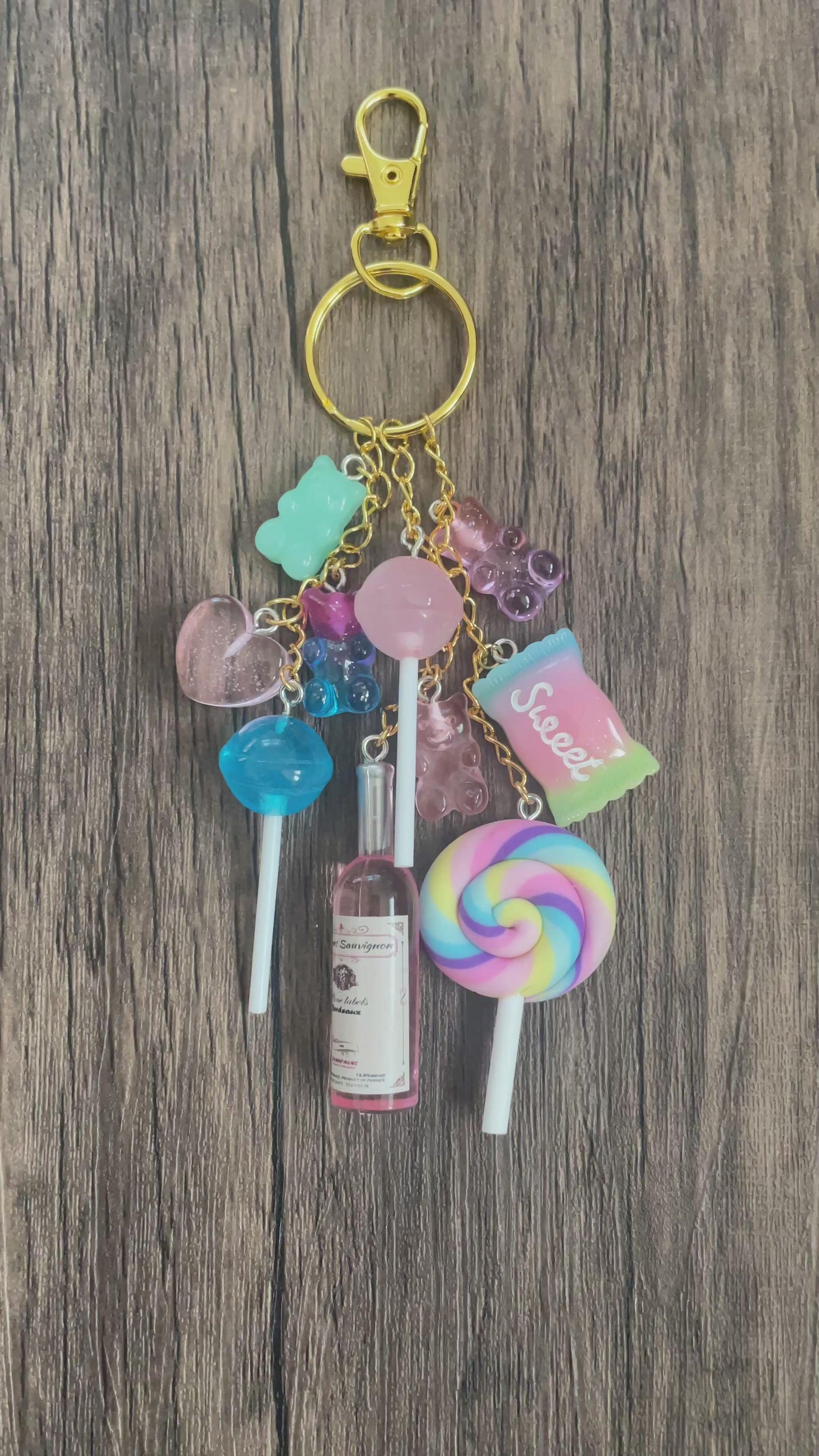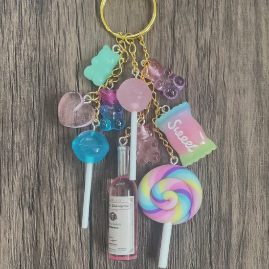 Love Candy Rose Bottle, Pink Hearts, and Lollipops Bag Charm