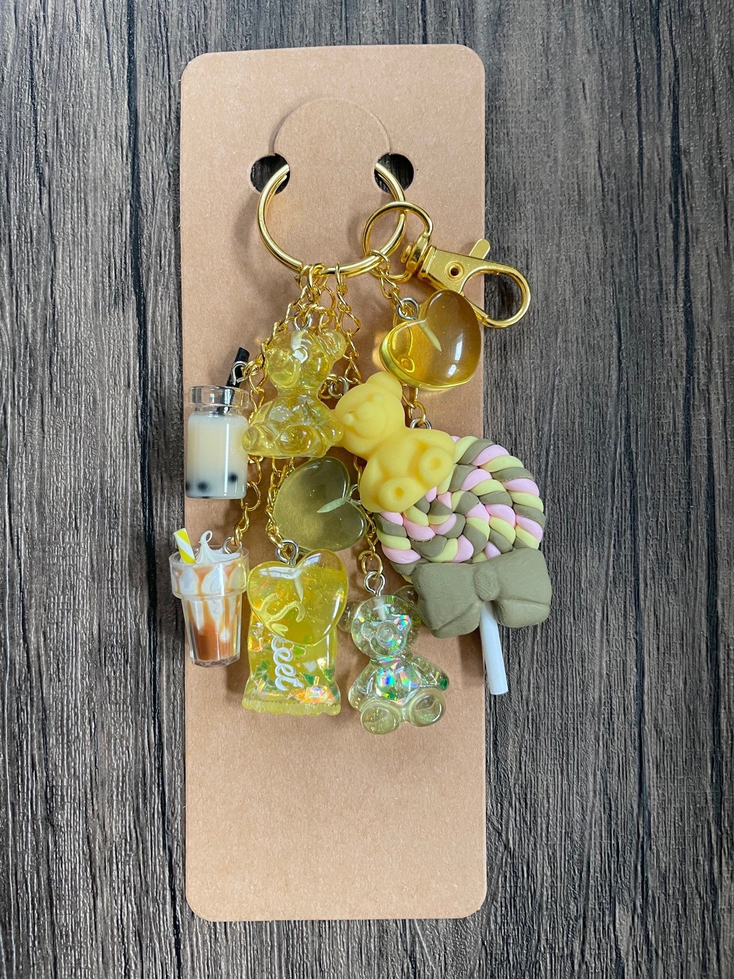 Love Candy Yellow and Green Heart, Taffy, and Bear Gold Bag Charm